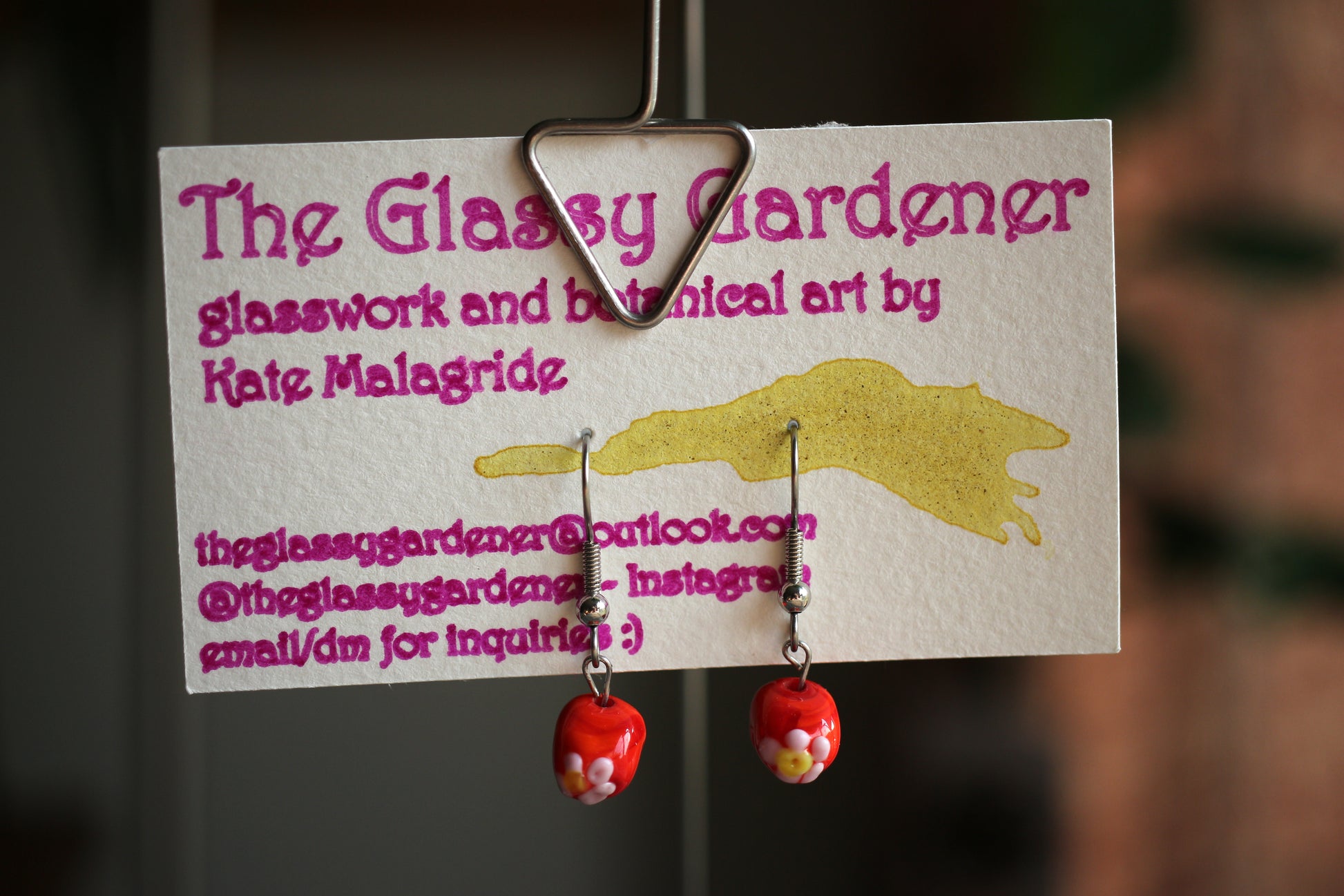 Handmade with love in Saskatchewan, these earrings are a statement piece that can go with any patriarchy-fighting outfit! Each pair is not perfectly identical, which is fitting considering what they are meant to look like. Enjoy! Piece may vary slightly due to the nature of handmade products and variations in the glass.