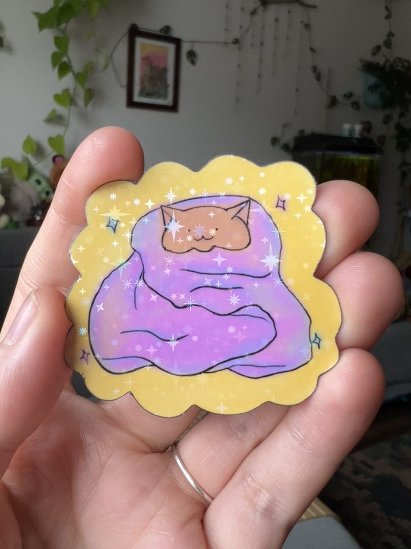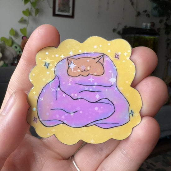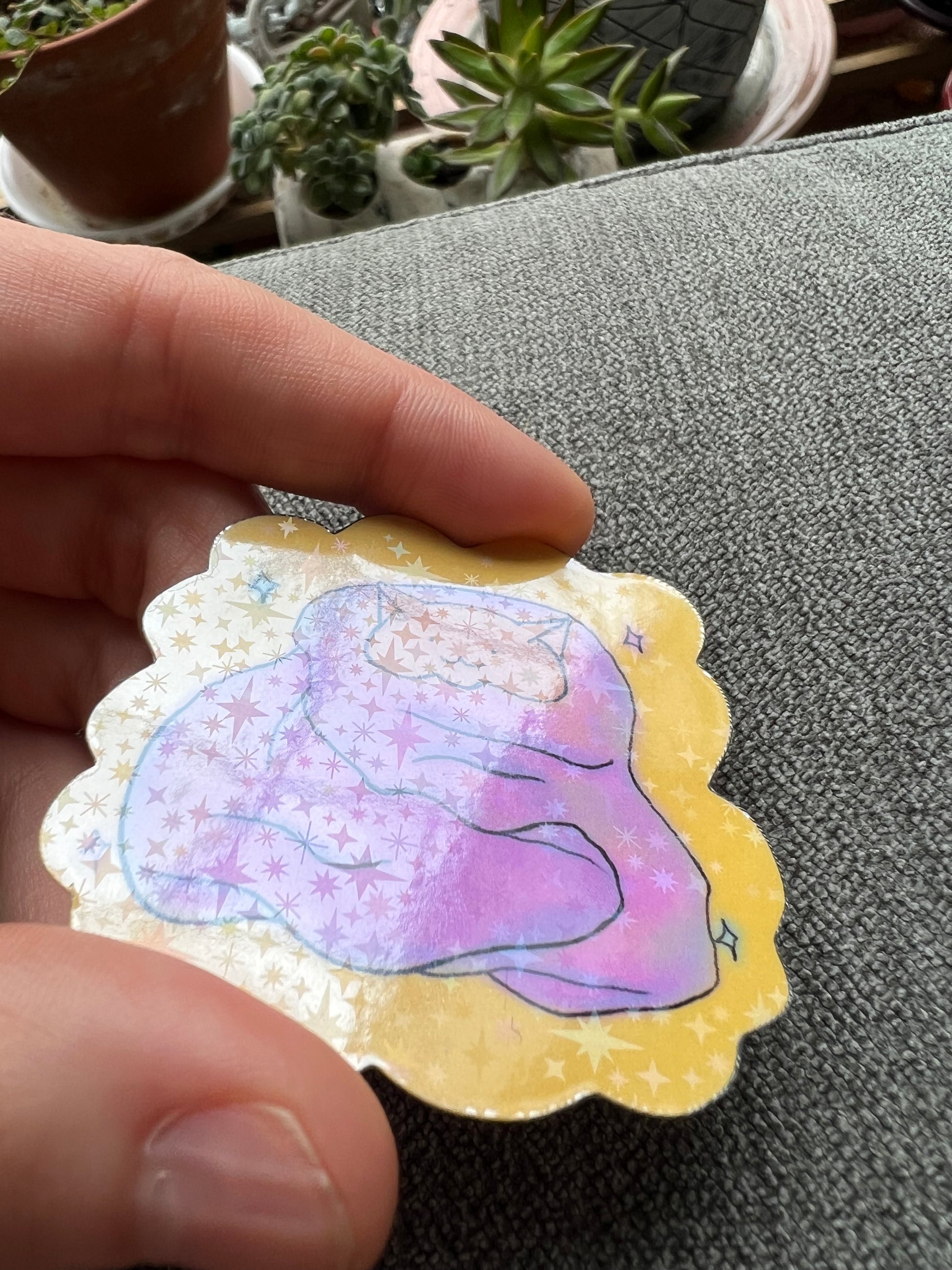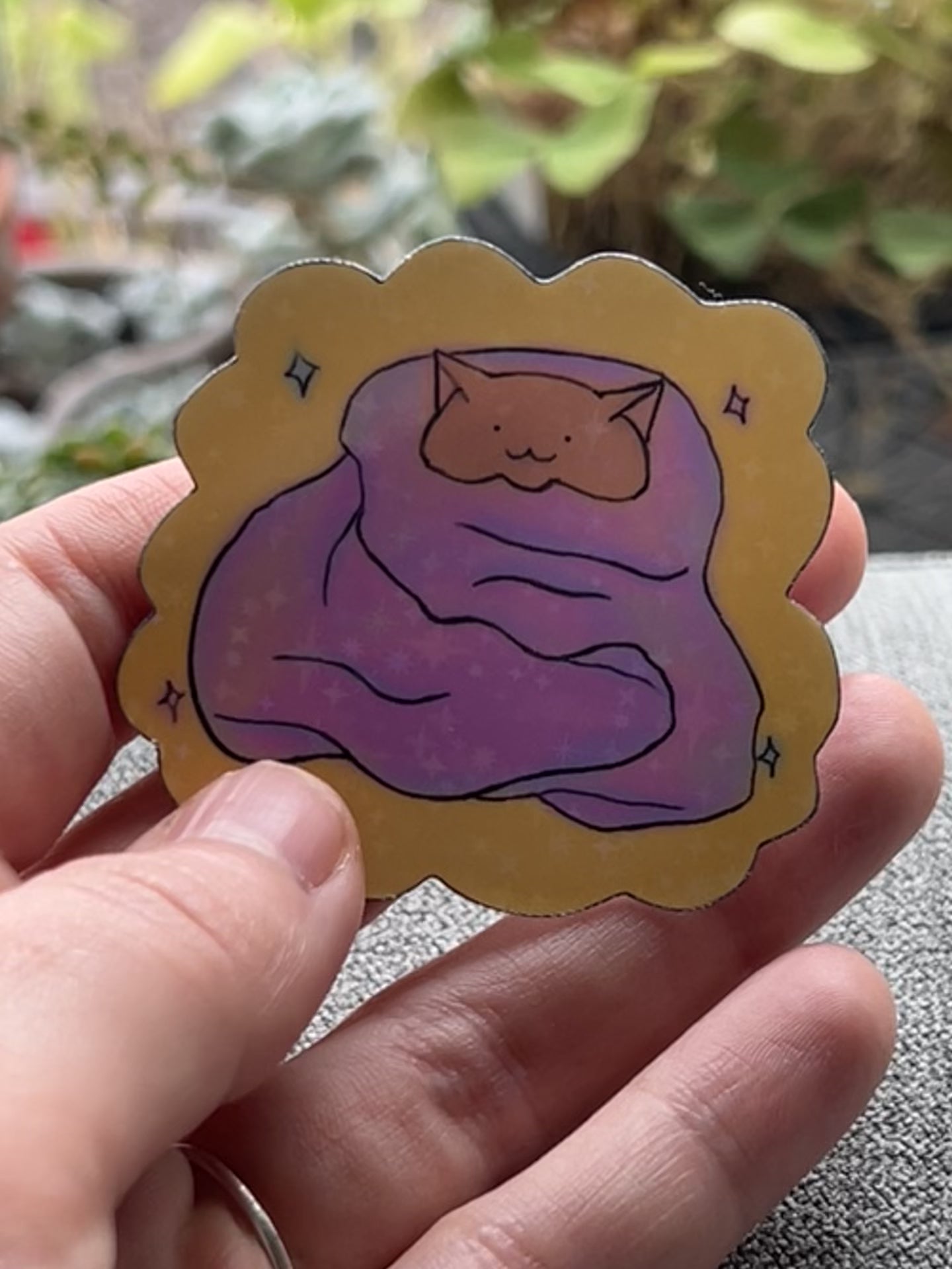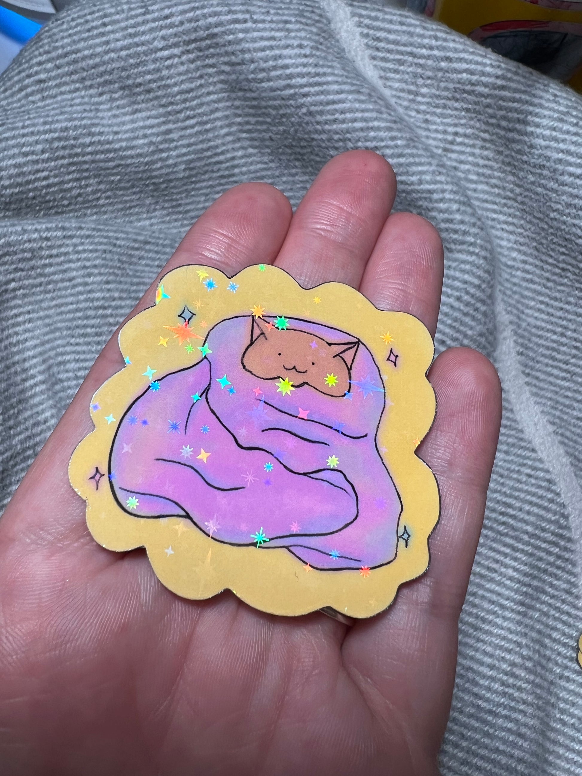 Based off of our cutie little boy curly, this cat stickie is so cute and HOLOGRAPHIC!!!!!