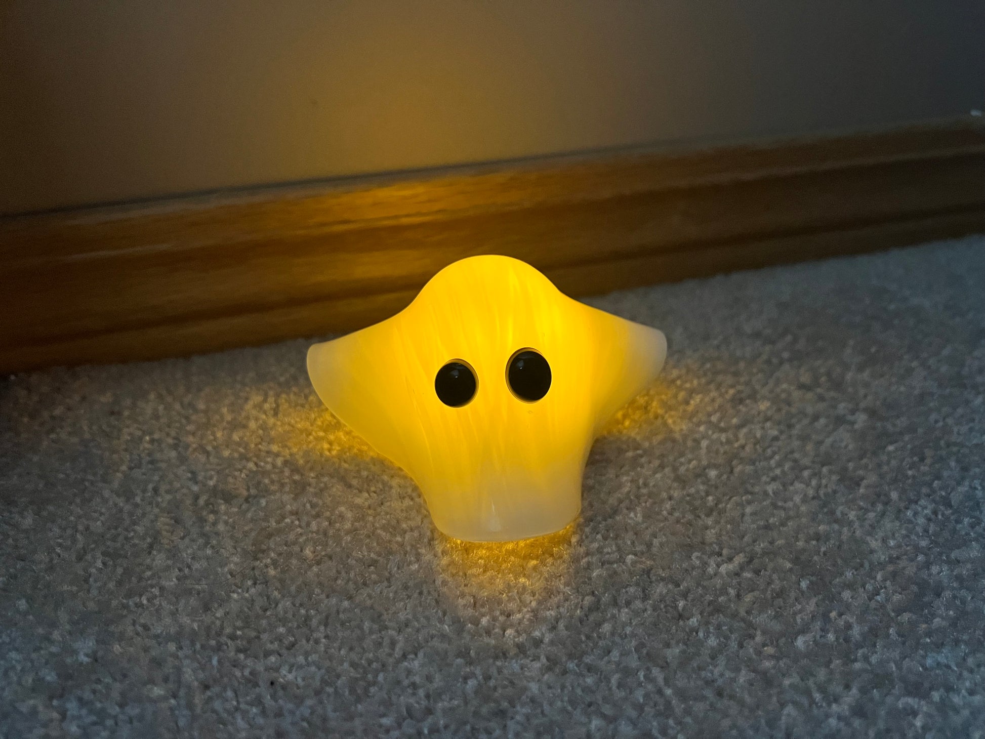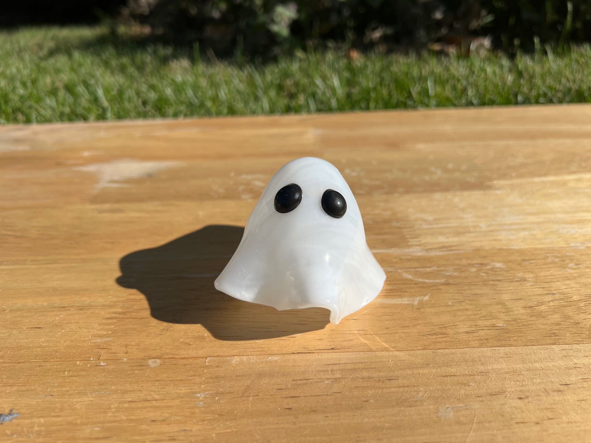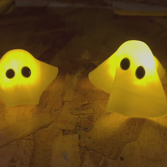 Cute spooky fused glass ghosties! Each one is unique and different, they come with an led tea light to illuminate as you wish :) prices vary based on glass thickness, design, and size