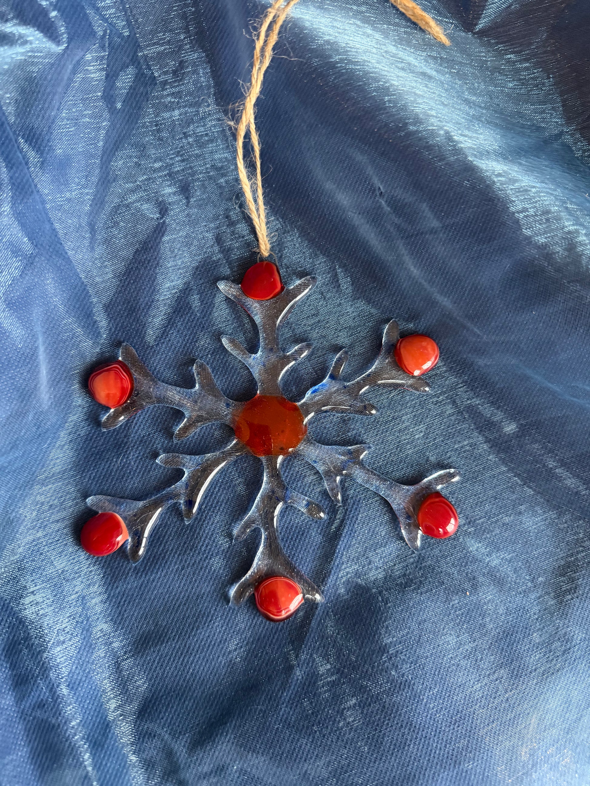 Snowflakes that all vary in shape and size! Let me know if you want specific measurements, but all are between 4-7 inches (ish) across!