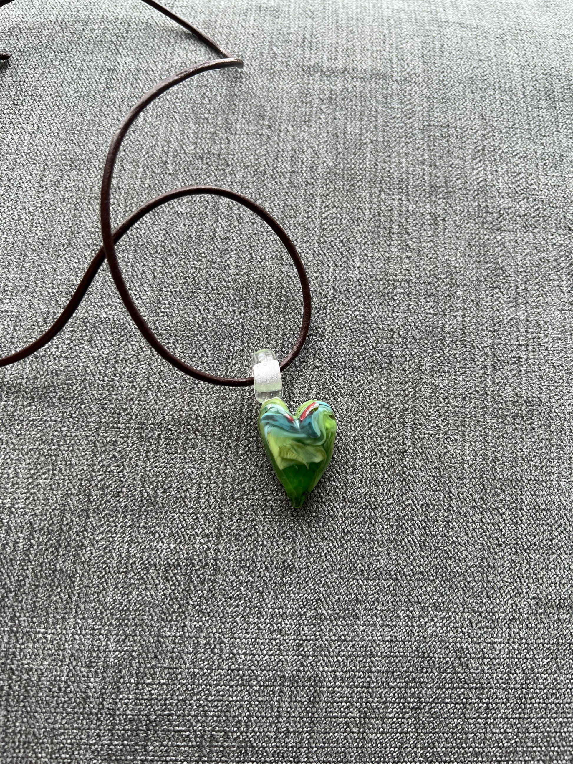 Cute heart charms to give yourself or your sweetie! Piece may vary slightly due to the nature of handmade products and variations in the glass.
