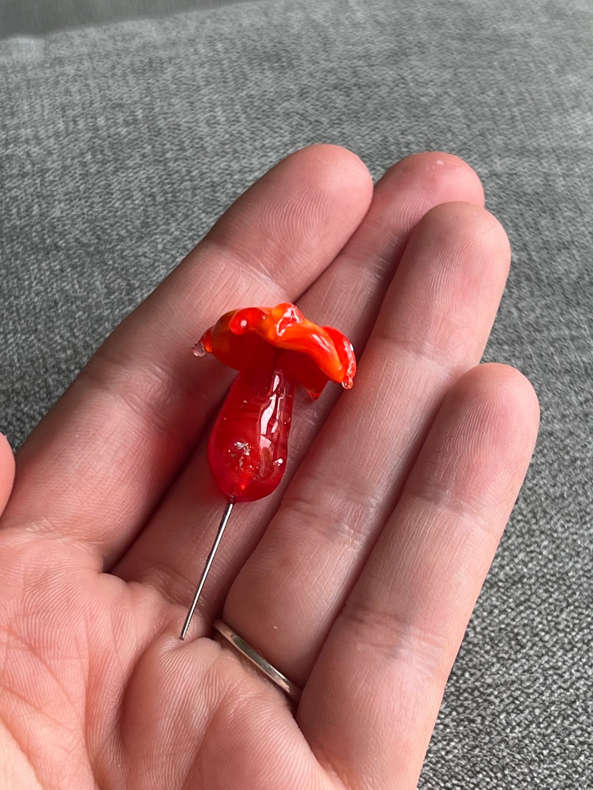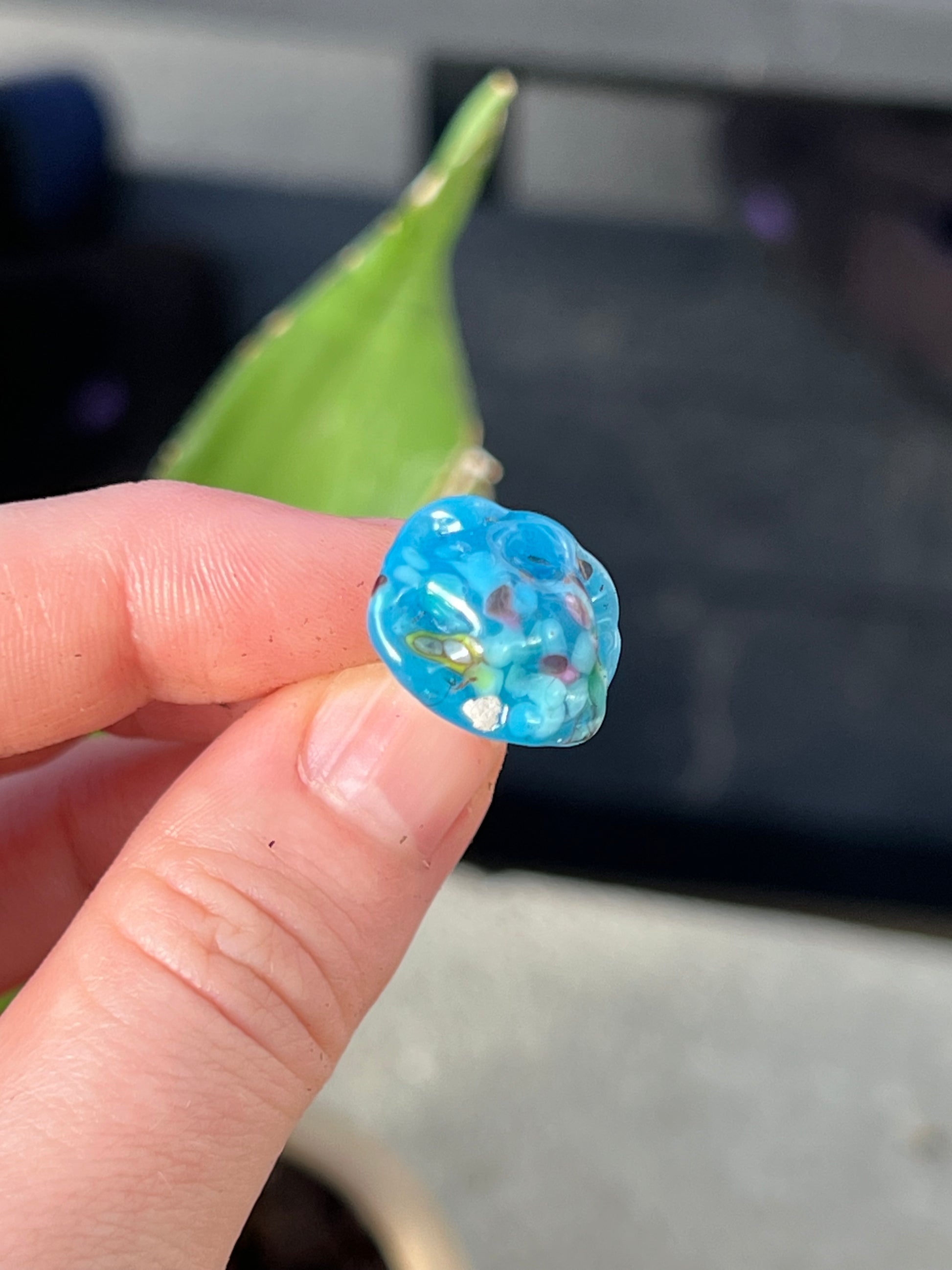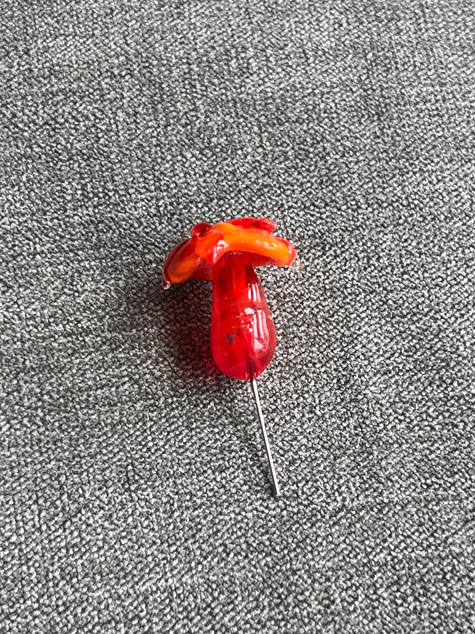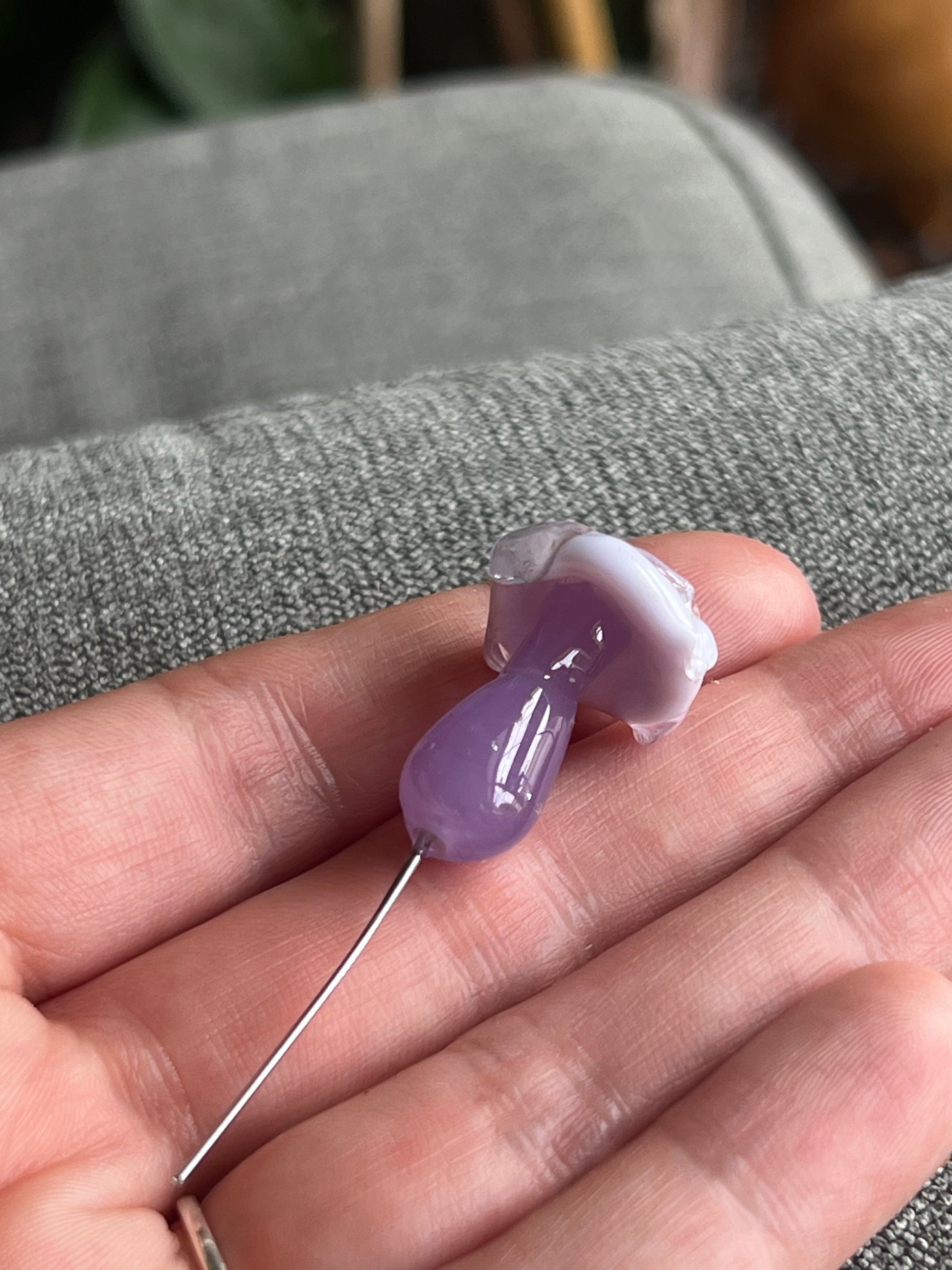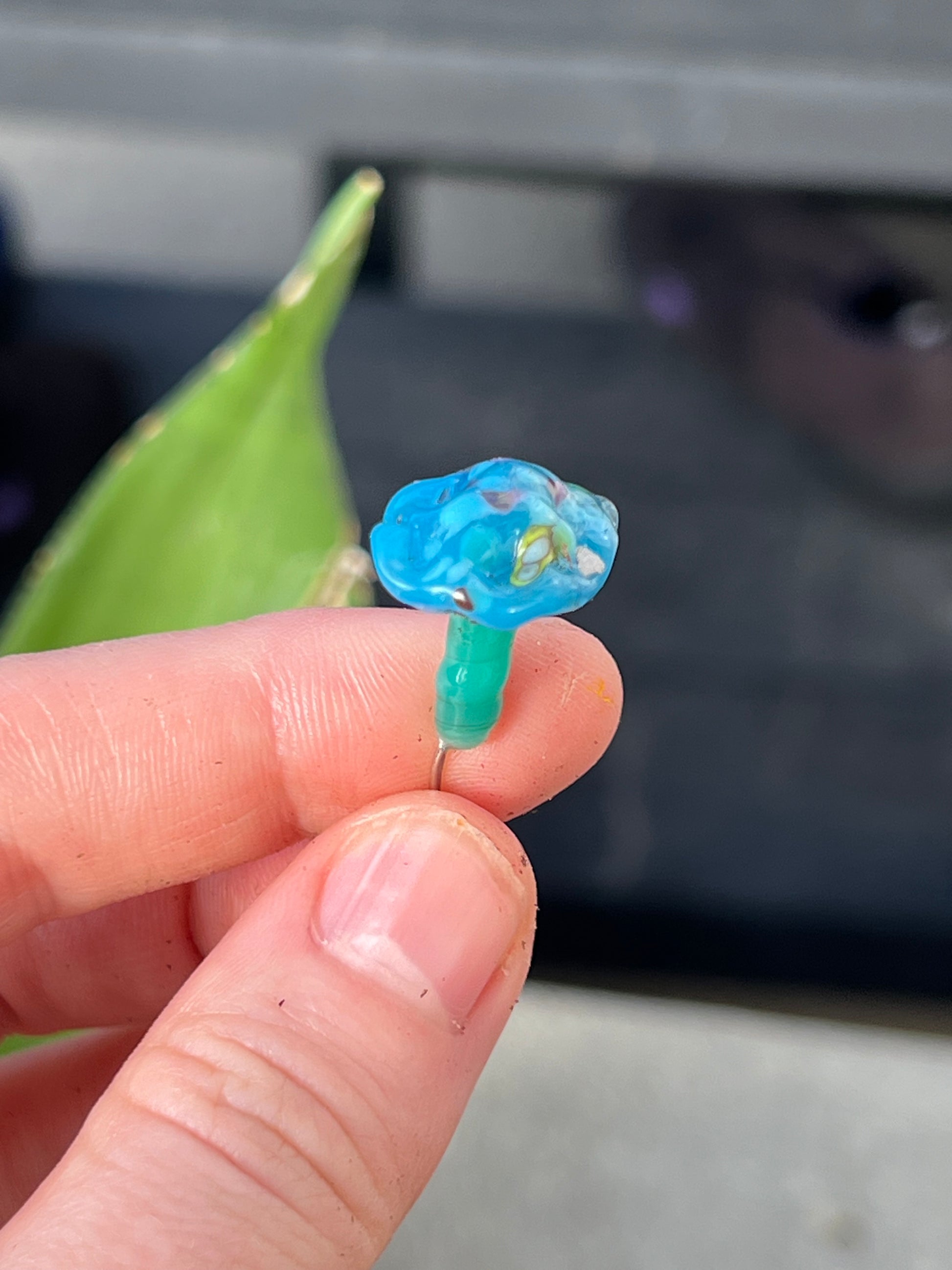 The glass used is soft glass 104 coe, and is annealed to perfection. The metal stake is repurposed crafting wire and is flexible.