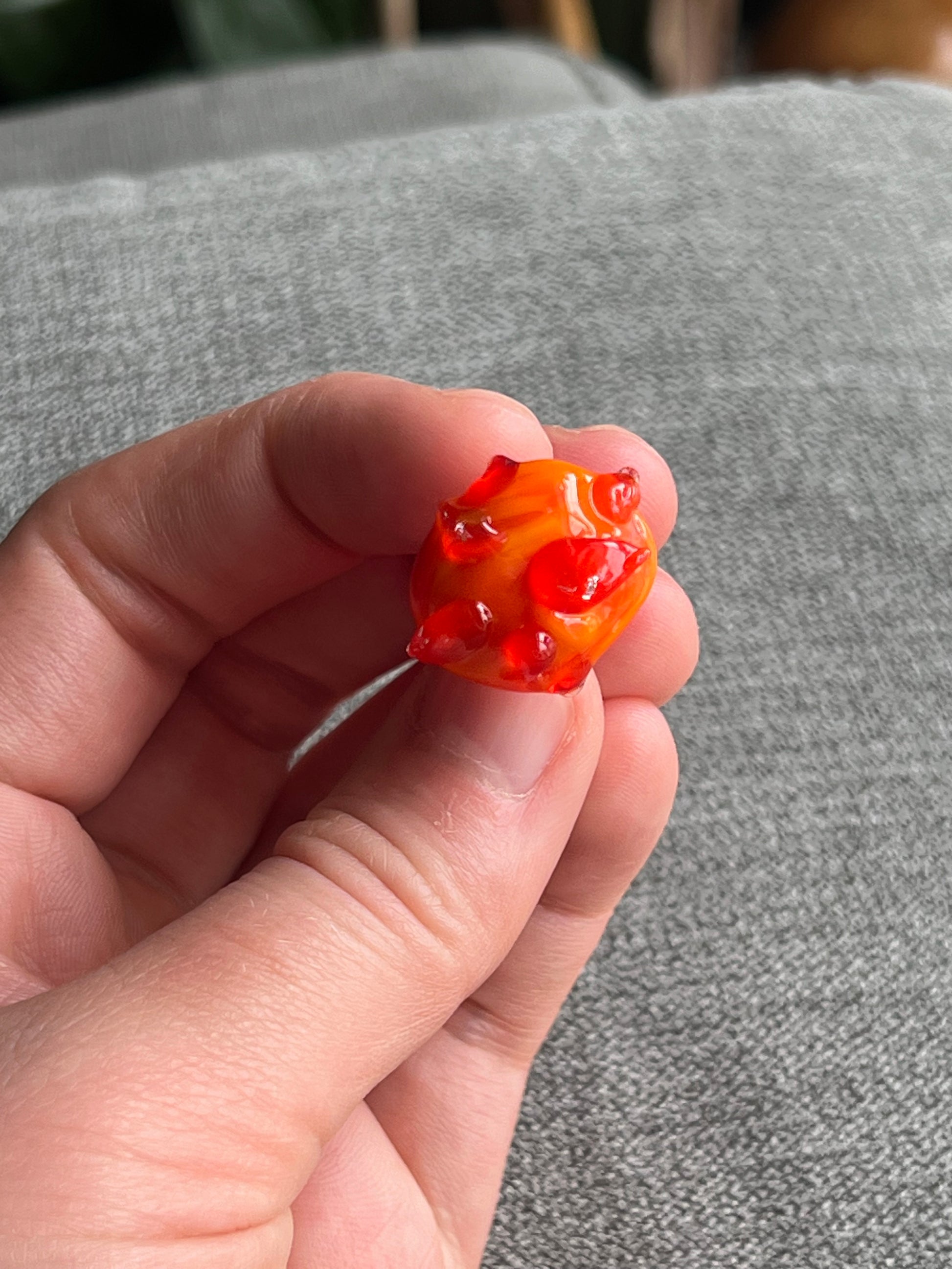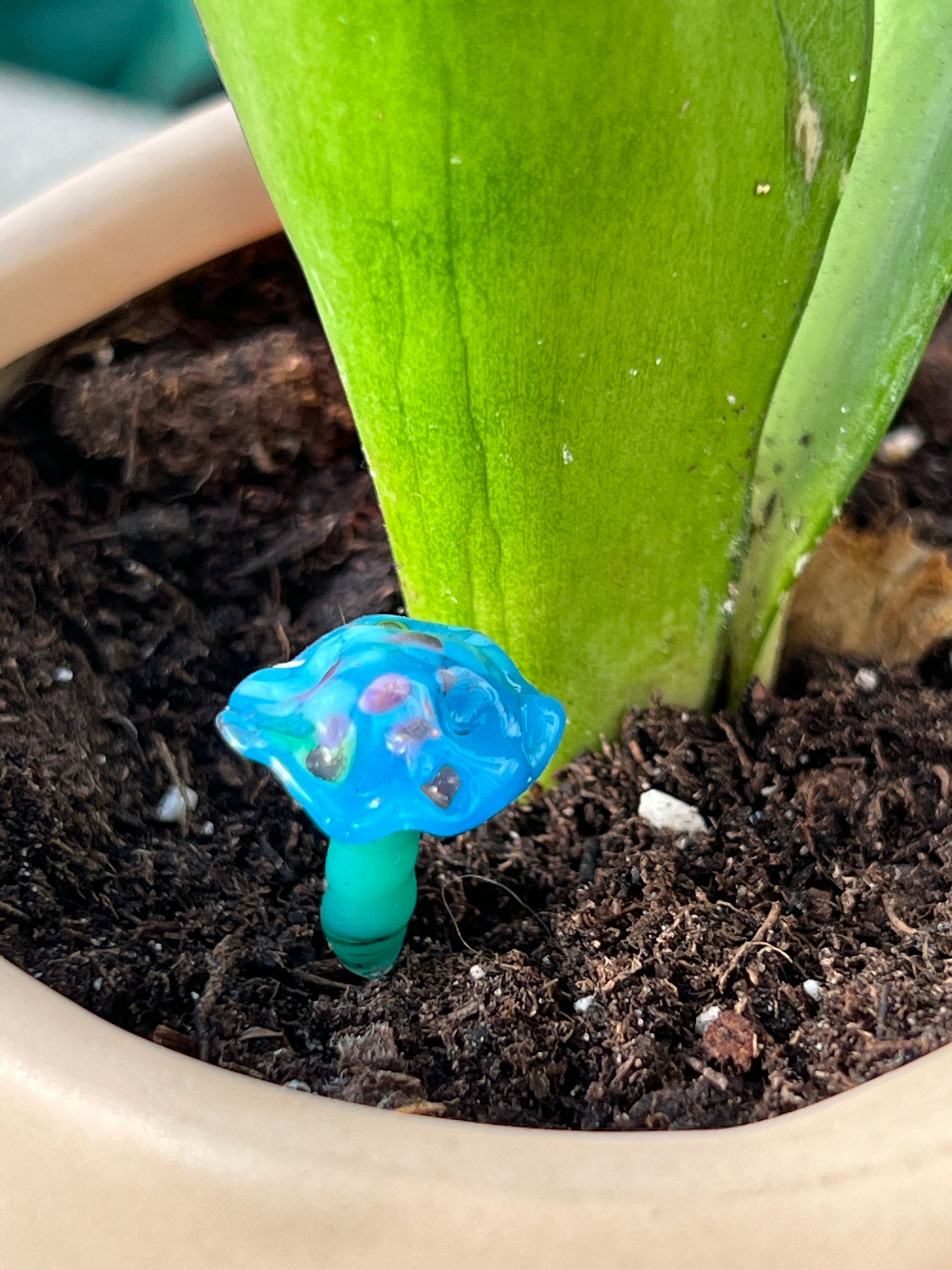 Handmade with love in Saskatchewan, these adorable glass mushrooms would adorably fill any plant pots you may have. Small and delicate, any of our colours would be perfect for a fairy garden, or to jazz up any plant pot. Piece may vary slightly due to the nature of handmade products and variations in the glass.