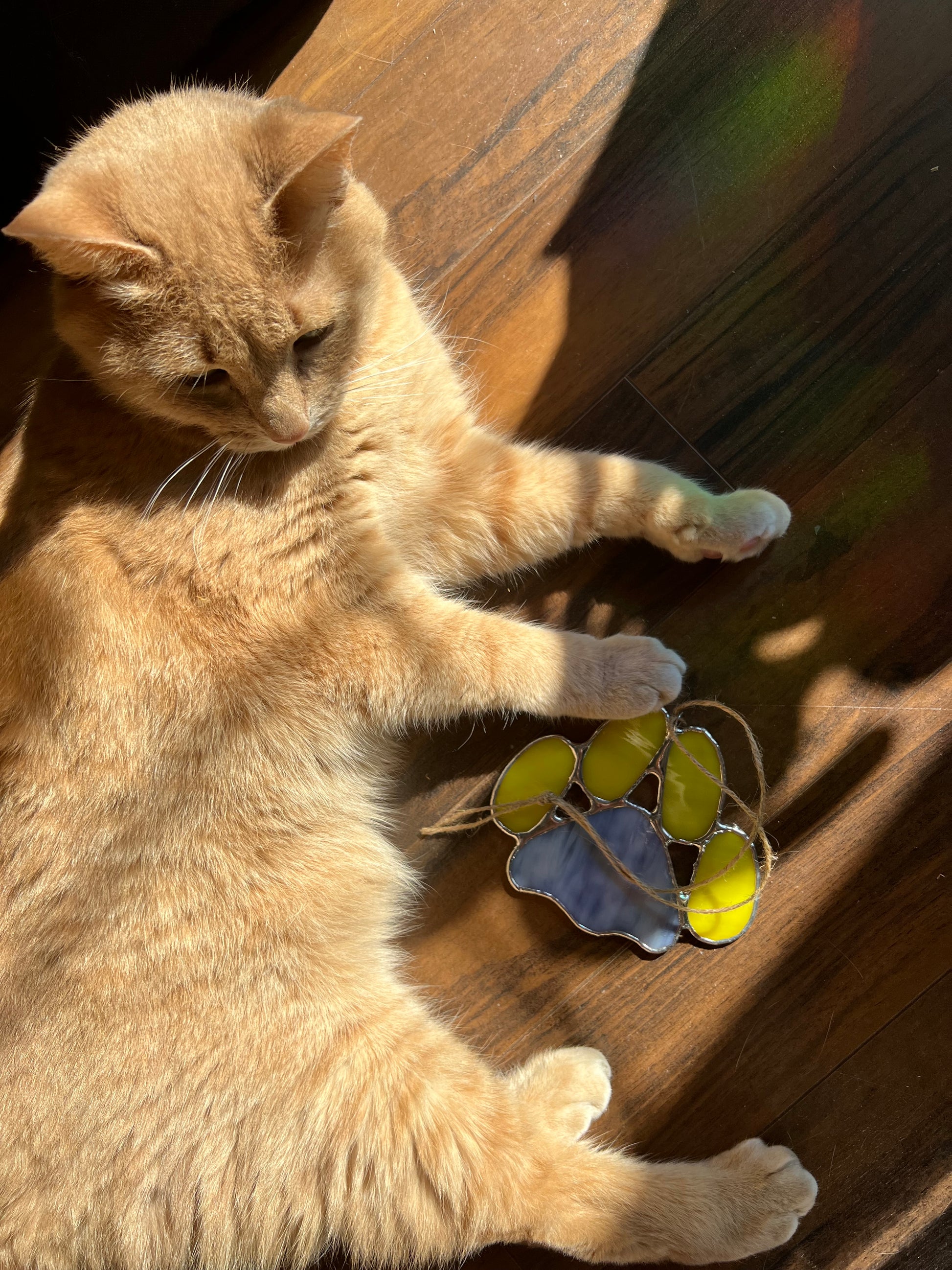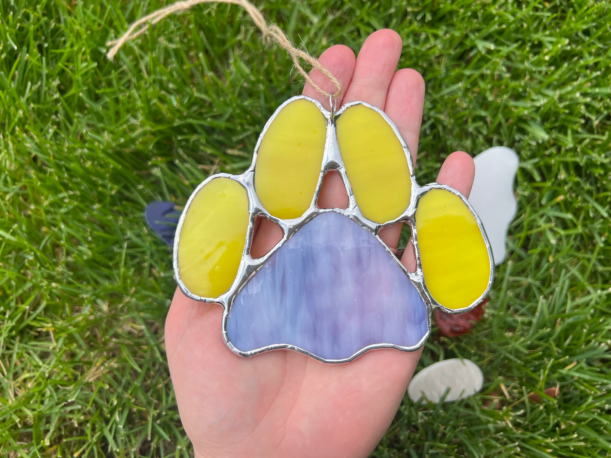 In this class you will learn to select coloured pieces of glass that are pre-cut to create your own unique paw print sun-catcher. You will learn how to use copper foil and a soldering iron. Please bring a separate pair of indoor shoes with a closed toe. We are working with molten metals, so wear clothing you don't mind getting a bit messy!