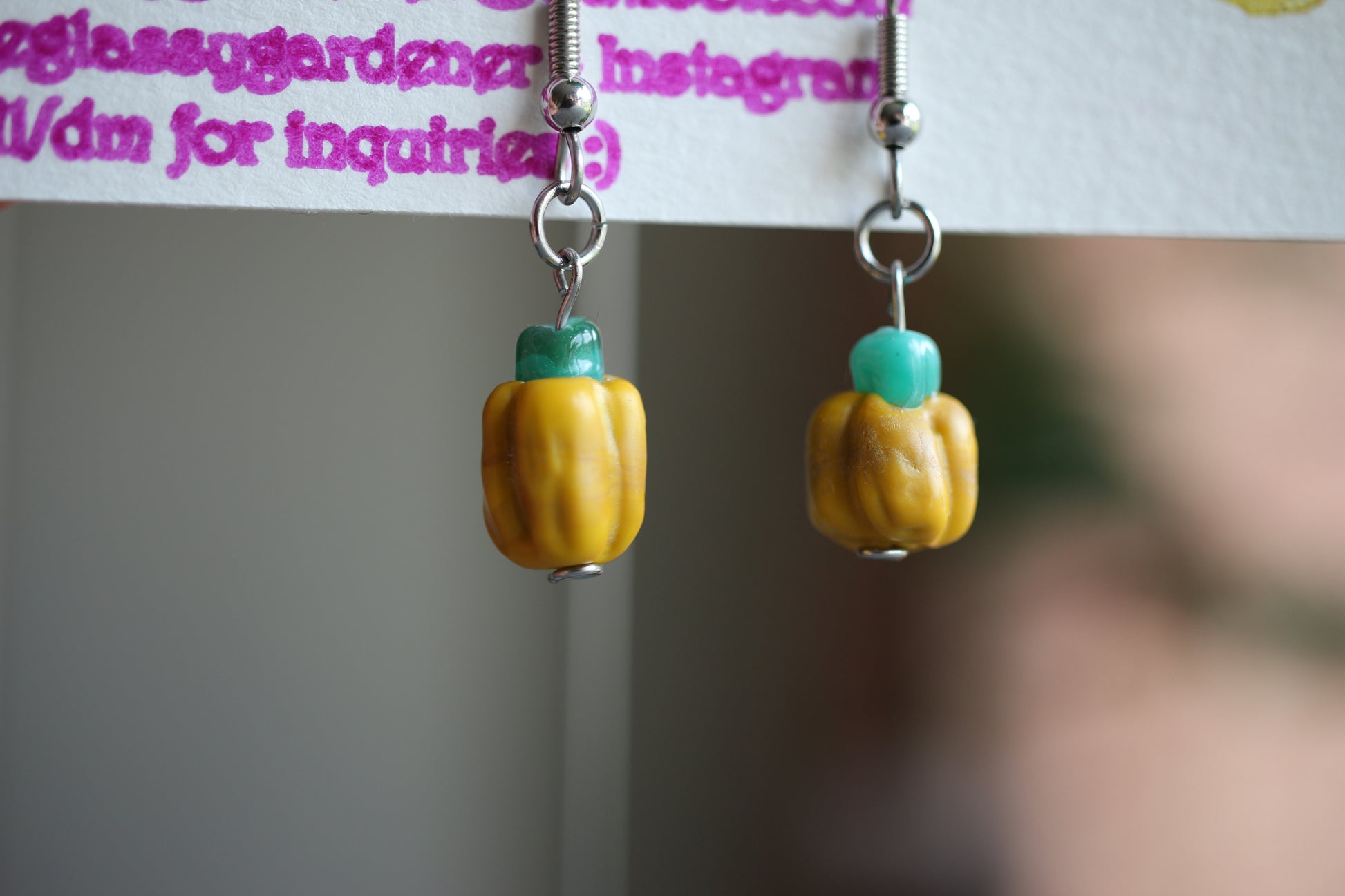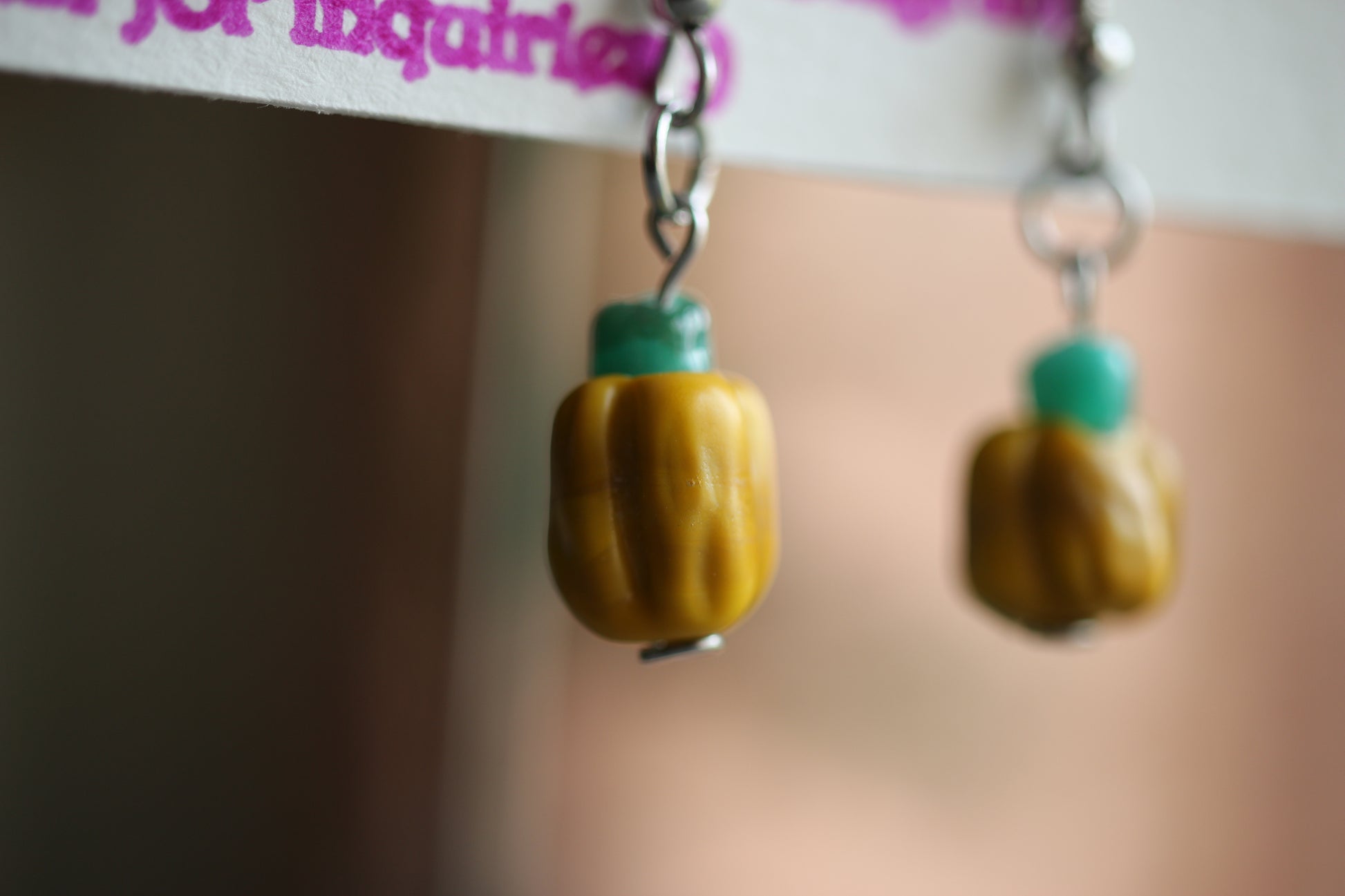 Handmade with love in Saskatchewan, these pumpkin earrings help you feel the beautiful, cozy feelings surrounding fall! :) Piece may vary slightly due to the nature of handmade products and variations in the glass.