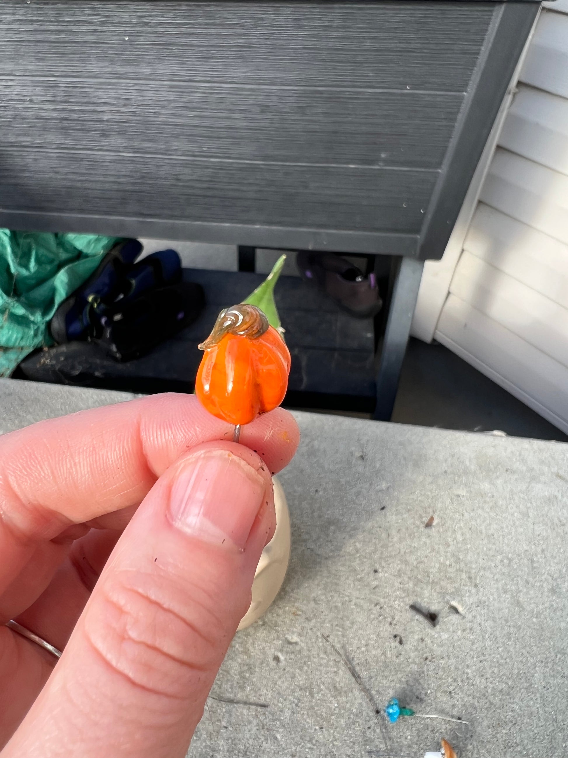 Handmade with love in Saskatchewan, these orange mini pumpkins will give a dash of fall to your plants!
