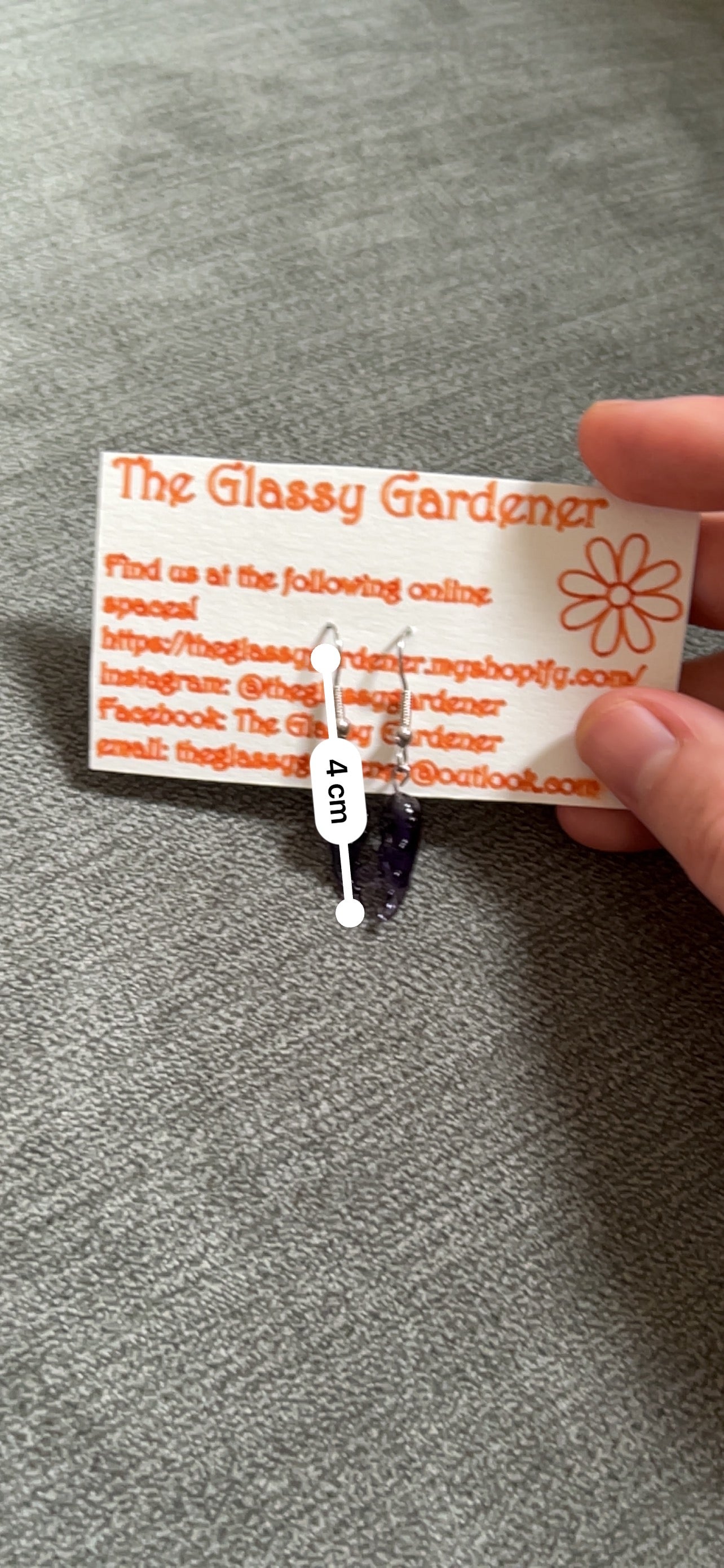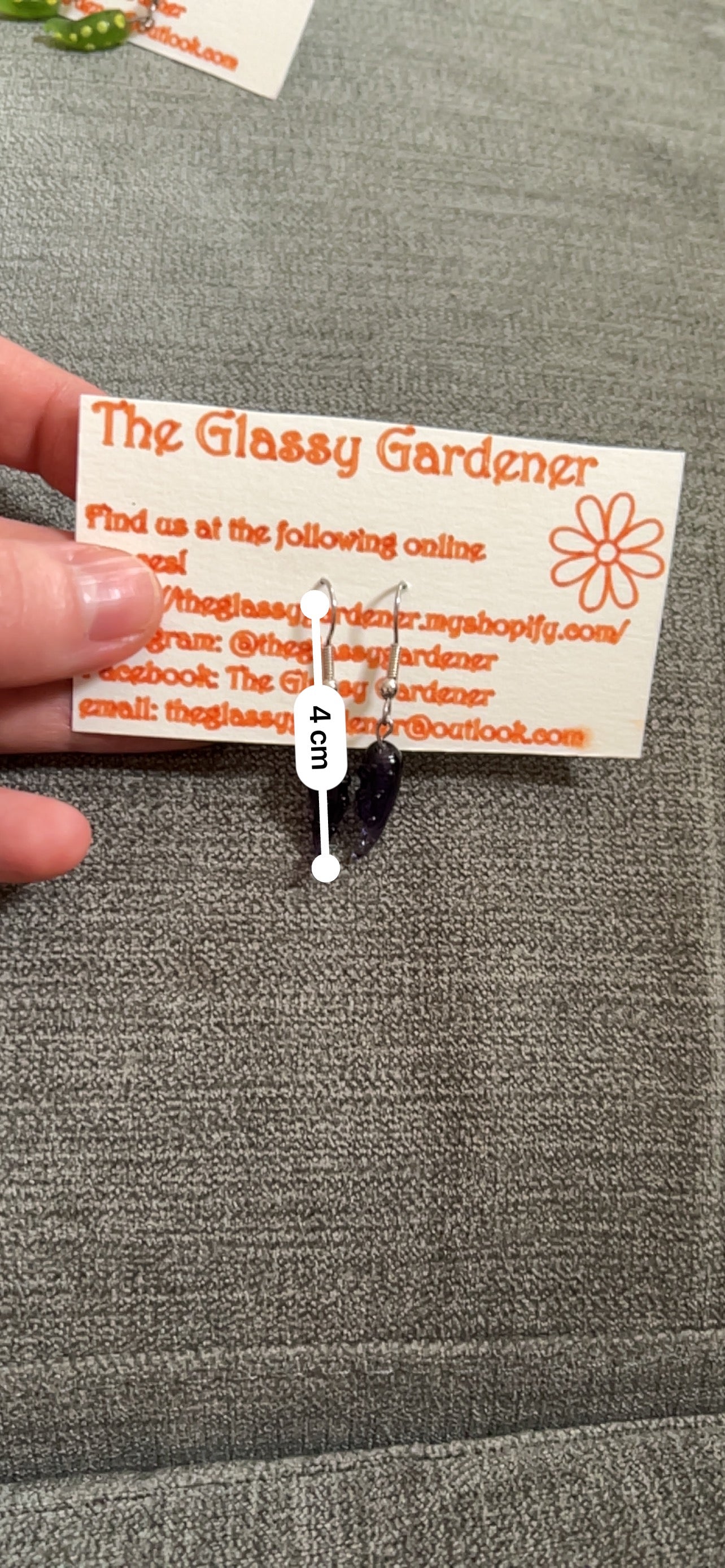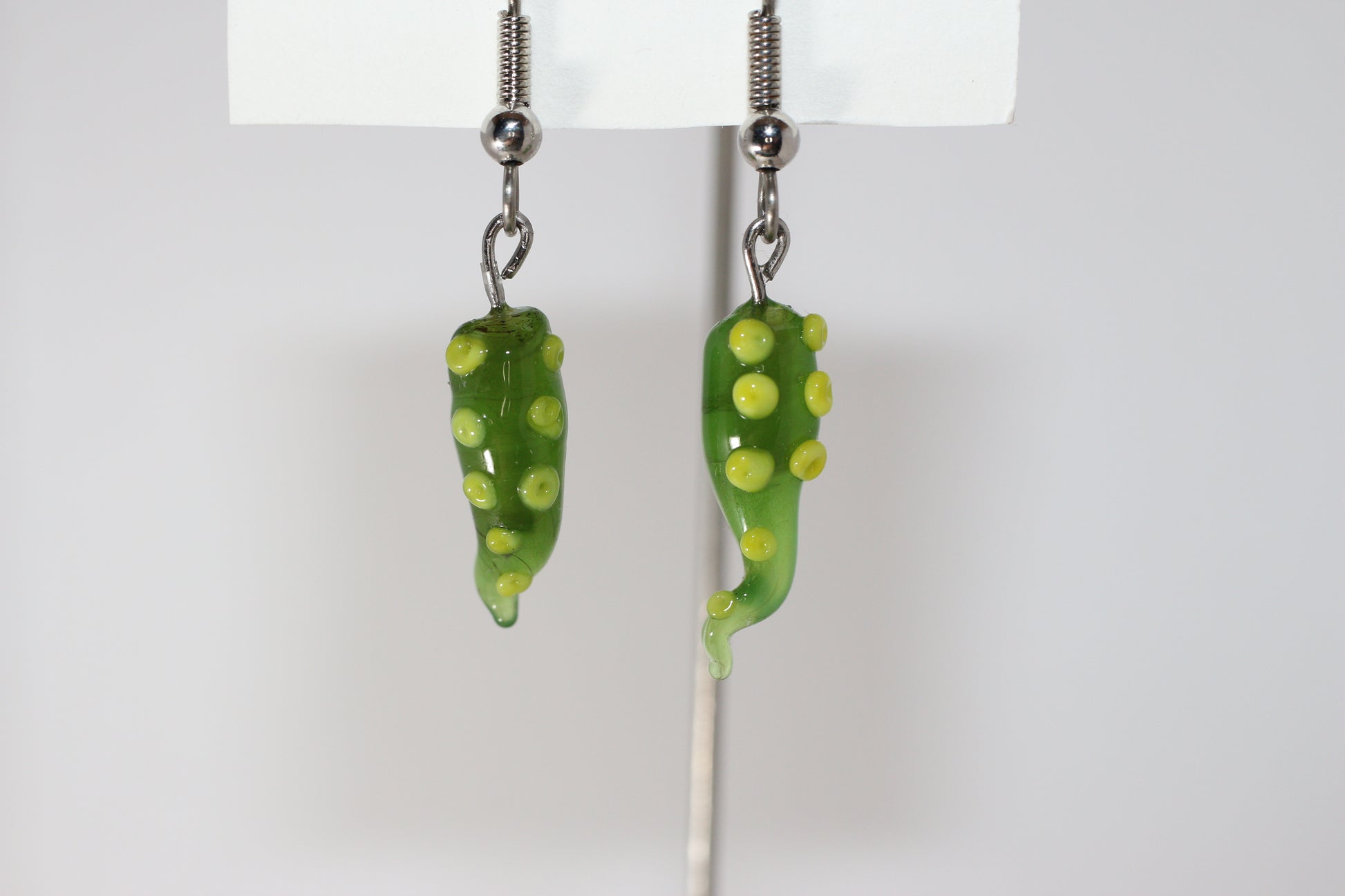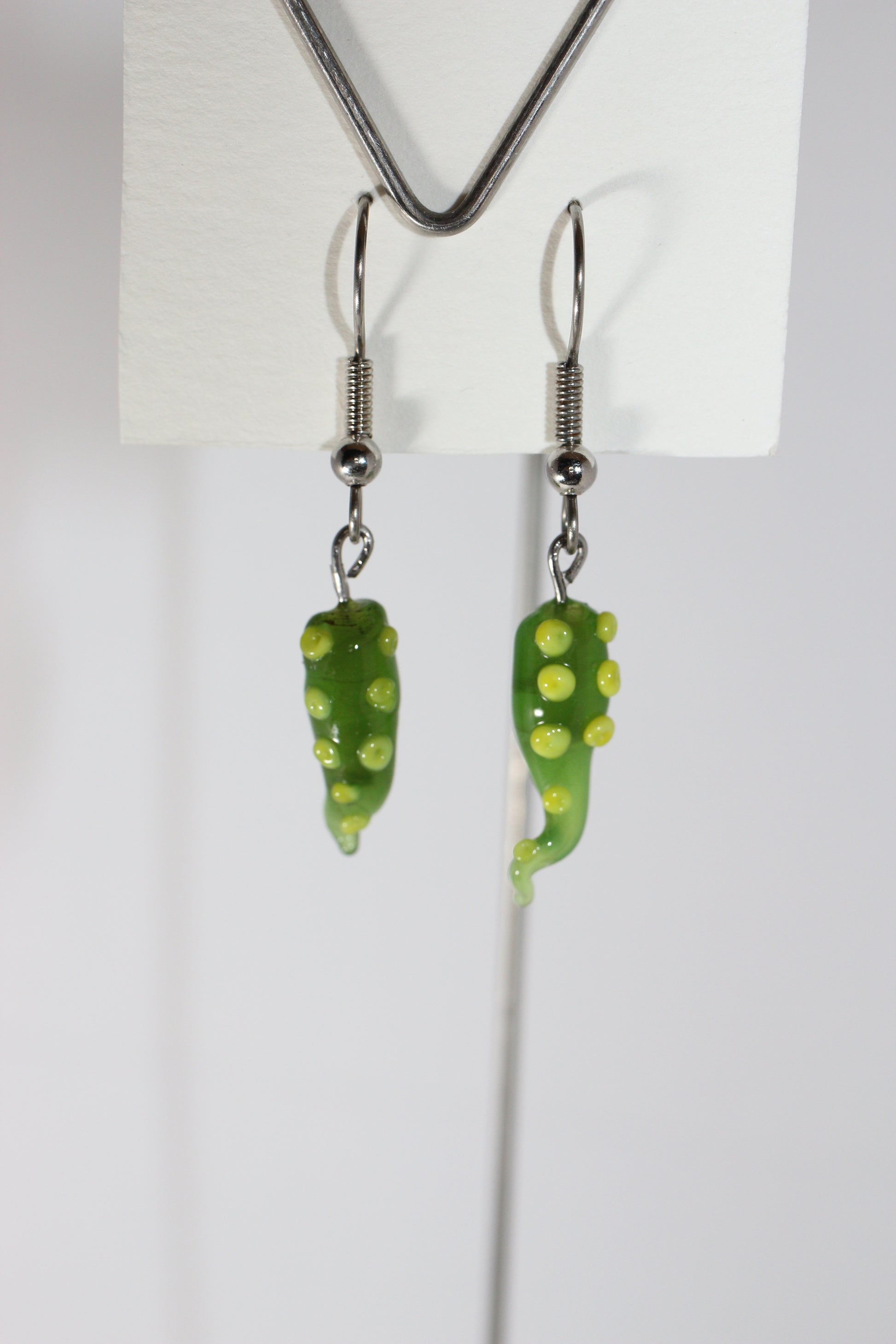 Lampworked glass, U.V. resin, surgical steel earring hooks silicon earring backs.