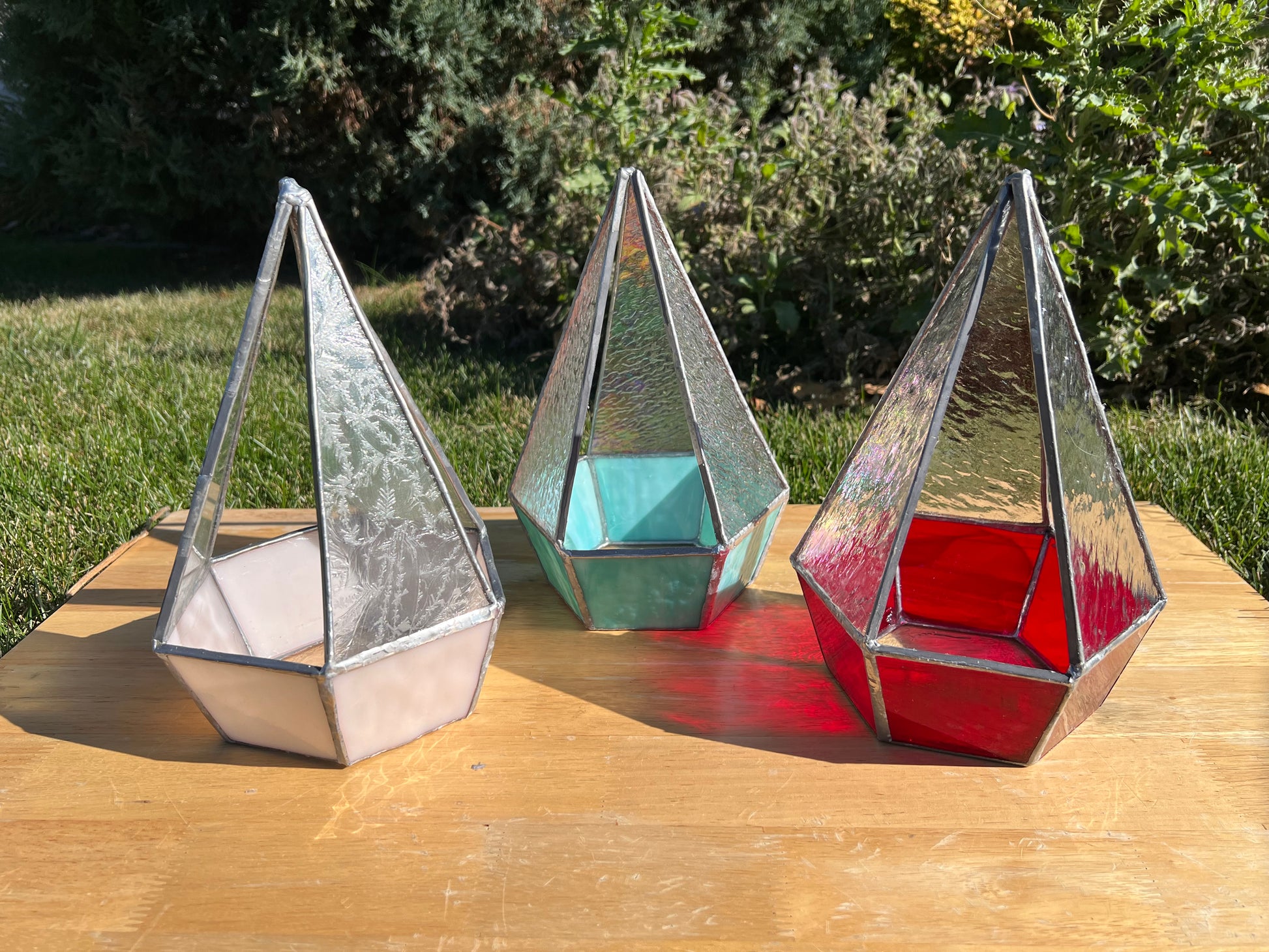 Handmade terrariums, they are sealed with silicone so you can put dirt directly into them and they are water tight!!!